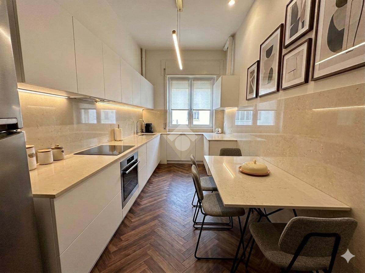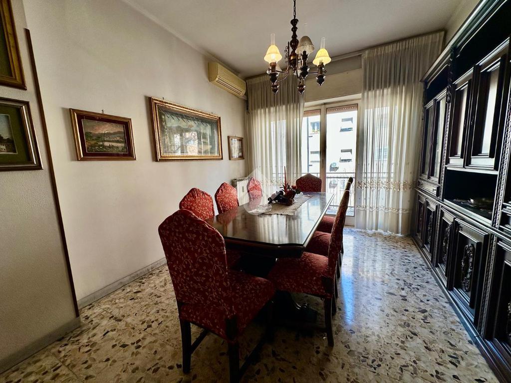 In Via Carlo del Greco proponiamo in vendita un appartamento di circa 140 mq, caratterizzato da ambienti ampi e da una distribuzione degli spazi particolarmente funzionale. L’ingresso, di forma quadrata e molto accogliente, è impreziosito da due comode armadiature a muro, ideali per organizzare al meglio lo spazio e riporre cappotti e oggetti di uso quotidiano. Da qui si accede al salone doppio, un ambiente spazioso e versatile, perfettamente suddiviso tra zona relax e sala da pranzo, ideale per momenti di convivialità e per accogliere ospiti. Attraverso un corridoio si sviluppa la restante parte dell’abitazione, dove troviamo la cucina abitabile, due camere da letto di ampia metratura, entrambe con accesso allo spazio esterno, ed il bagno finestrato con vasca. Completa la proprietà una cameretta con bagno privato, soluzione ideale come stanza per ospiti, studio o camera di servizio. L’appartamento è ulteriormente valorizzato dalla presenza del balcone perimetrale, che garantisce luminosità e vivibilità agli spazi interni.